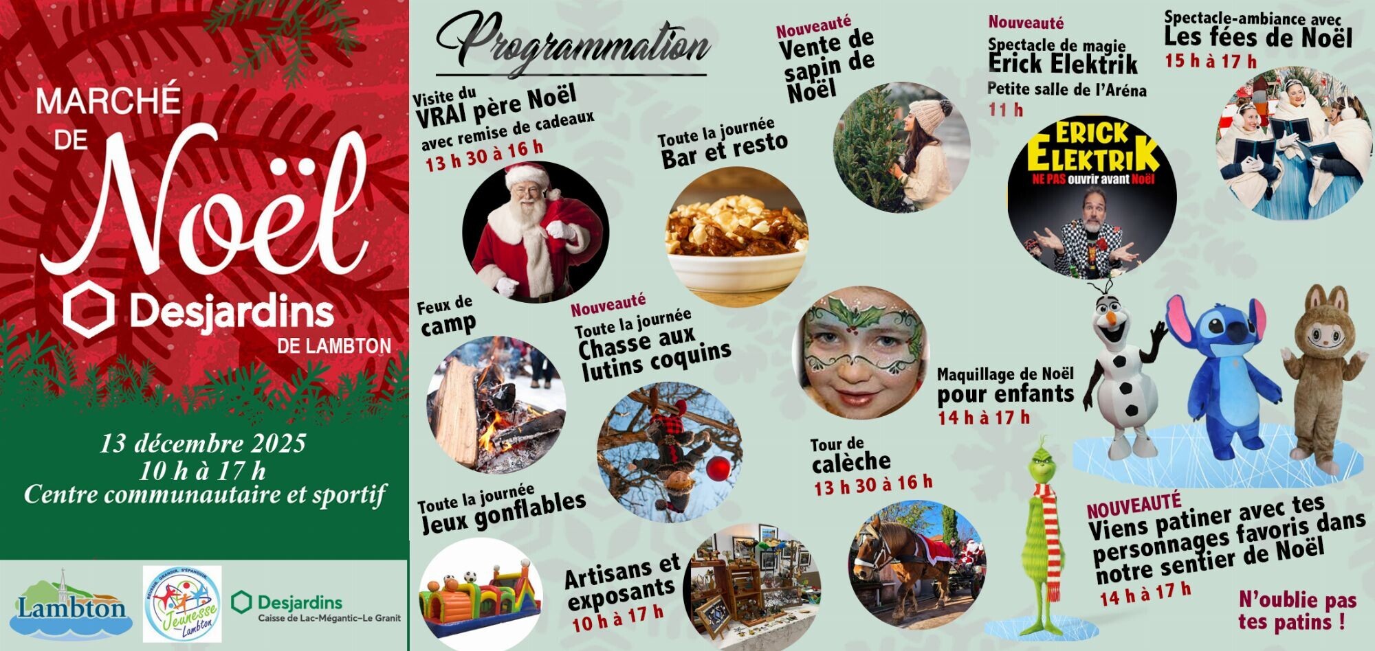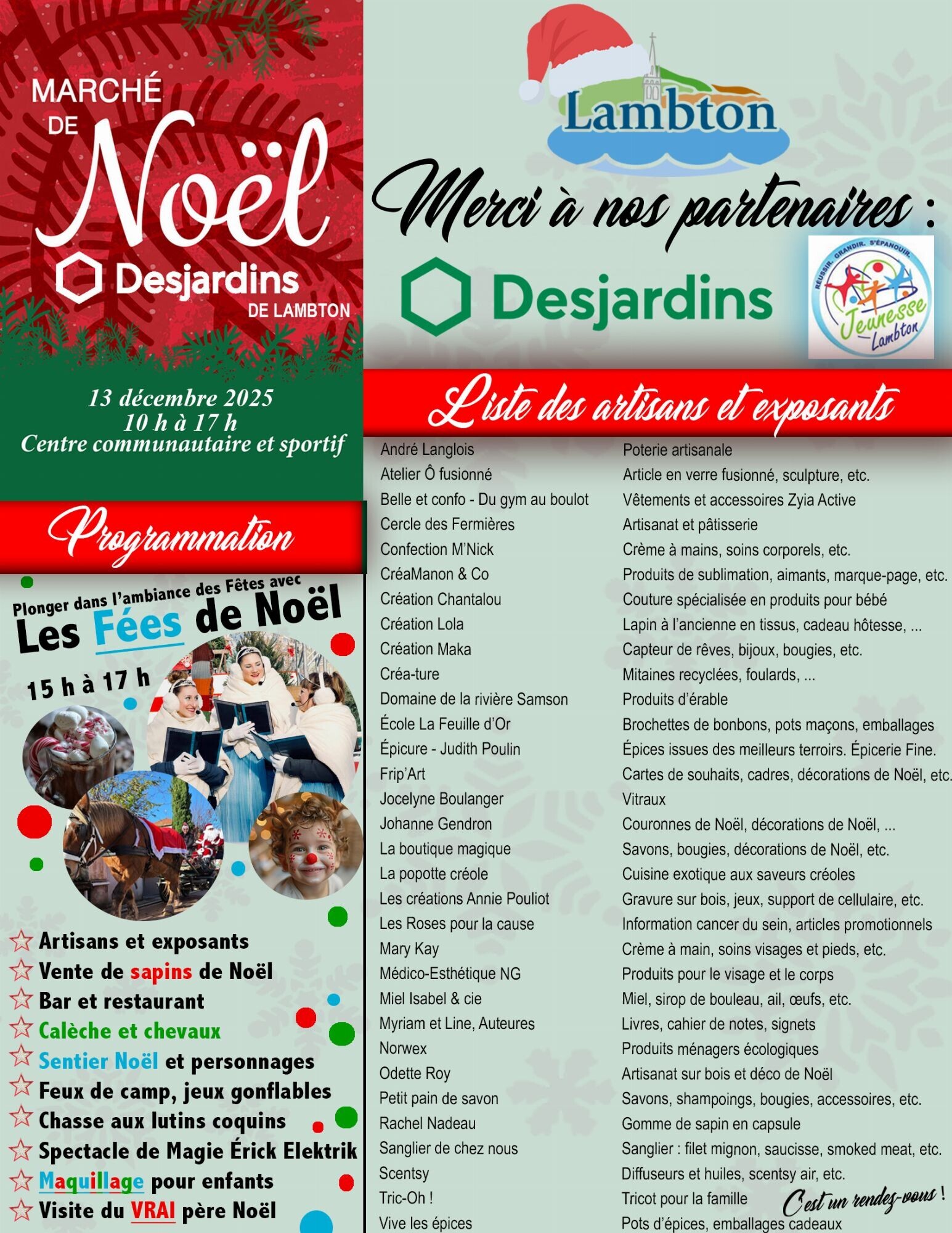 Nous ne prenons maintenant plus de candidature pour le Marché de Noël de Lambton qui aura lieu le 13 décembre prochain au Centre communautaire et sportif.